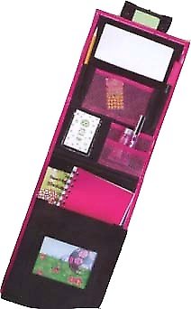 Keep your locker organized with this nifty organizer. Includes: a mirror, a photo frame, and lots of pockets for all your stuff, and hook for hanging 7.5" x 24"